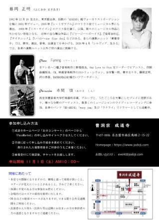 お寺コンサートは、仏教行事や法事以外でも気軽にお寺に足を運んでいただきたいとの思いから、不定期に開催しております。